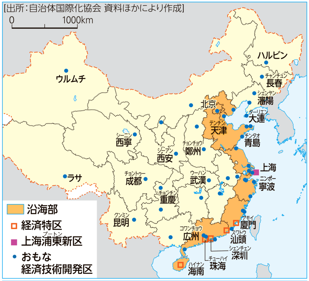 1980年~(2 ●●●  )の指定外国からの資本技術を誘致し、経済発展のモデルとするために設けられた特別な地域。税制上の優遇措置や自由度の高い市場ルールが適用された。