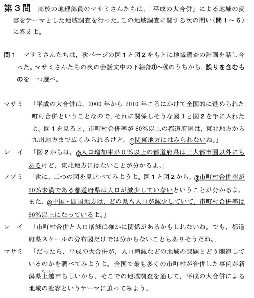 こういう問題はぜひ得点してほしい。地名などの知識は必要ない。考えれば正解できます!
