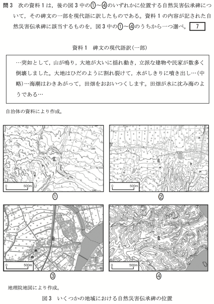 ① 図は1900年以降なのに問題文は1900年よりも前。知っているかどうかを問われていますが、巨大津波を伴う地震が1900年よりも前に繰り返し発生していたというのは「正しい」とわかるはず。正文。