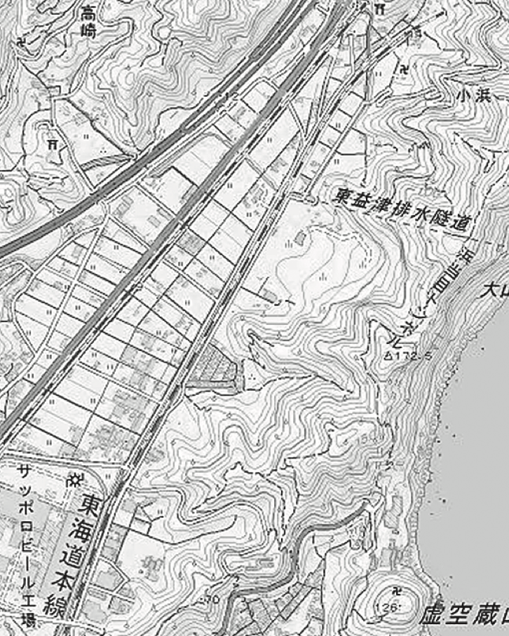 シ L地点は背後に山。そして旧河道が横にある谷底平野。