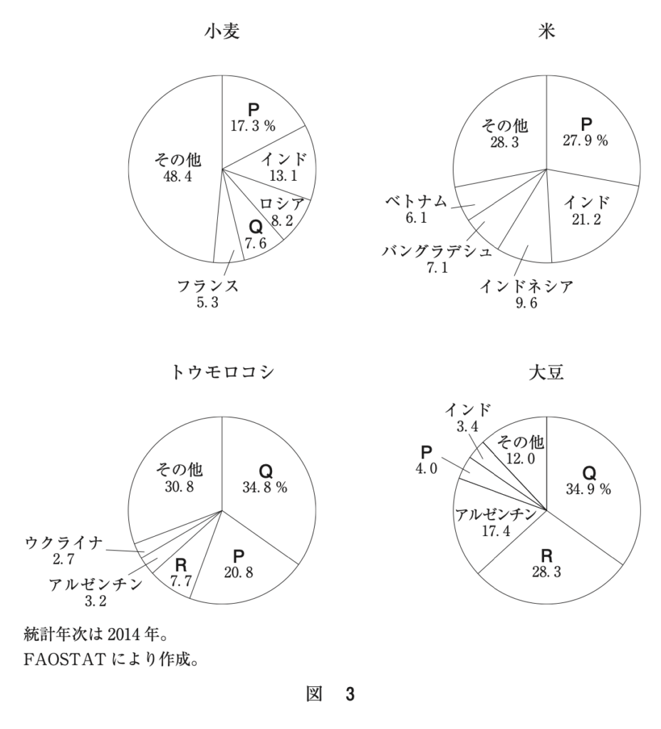 ともろこしは南米で生産がさかんだが、Qにブラジルを入れると、Rがアメリカになる。