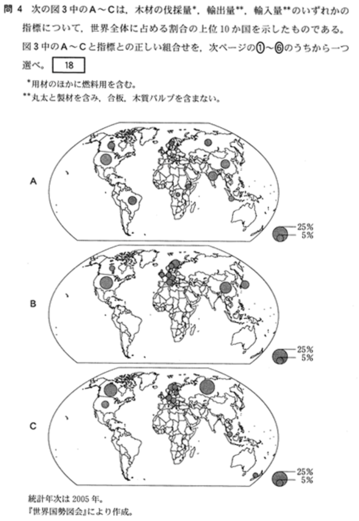 - 針葉樹(軟木): アメリカ、ロシア、カナダが上位。D気候の(5 ●●● )や、アメリカ南部の広大な植林地からの生産が多い。